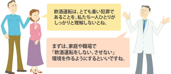 「道路交通法」では飲酒運転のほか、飲酒者への車両の提供、運転者への酒類の提供、飲酒運転の車への同乗についても禁止されています。