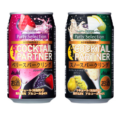 今回発売する新商品は、『アサヒカクテルパートナー 期間限定 ベリースパークリング』『同 スノースパークリング』(いずれも缶350ml)で、2010年2月末までの期間限定発売となります。希望小売価格はいずれも141円(消費税別)です。