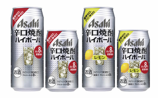 アサヒビール株式会社(本社 東京、社長 小路明善)は、複数の酒類カテゴリーを併飲するお客様が増加するなか、ニーズが高く伸長著しいRTDカテゴリーの<高アルコール市場>に向けて、新ブランド『アサヒ辛口焼酎ハイボール』2アイテムを2014年5月13日(火)から全国で新発売します。