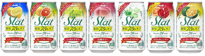 アサヒビール株式会社(本社 東京、社長 小路明善)は、低アルコール飲料『アサヒSlat(すらっと)』の基幹7フレーバー(※2)の中味・パッケージをリニューアルし、2014年12月製造分より順次切り替えて全国で発売します。